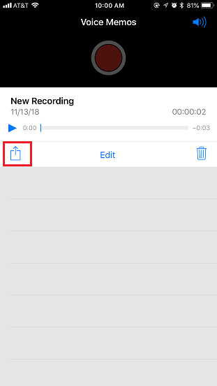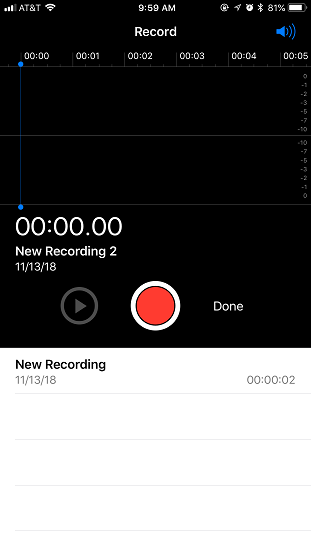 Launch iOS Voice Memo on your iPhone/iPad, you will see the following initial screen: