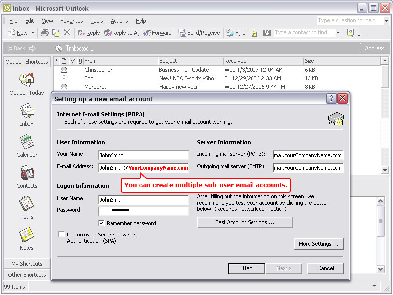 | Create sub-user email accounts |