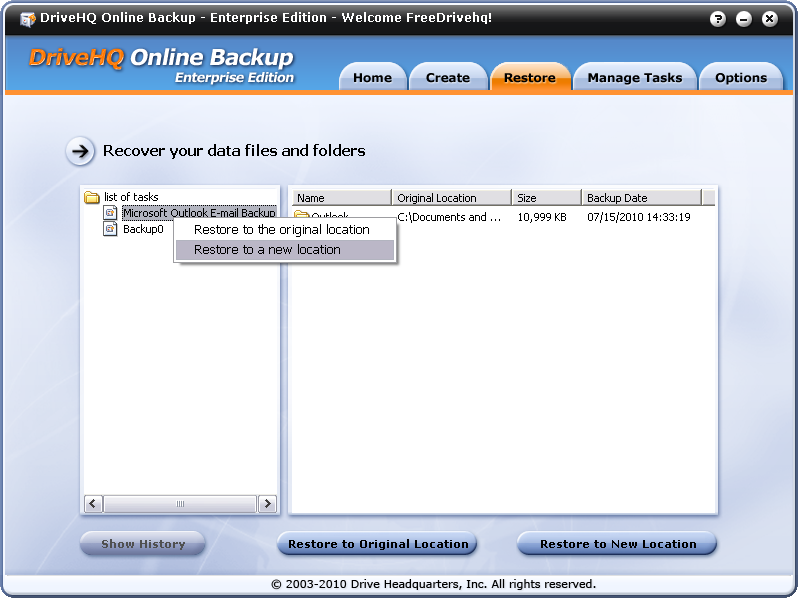 you can restore your files / folders. DriveHQ offers many ways / options for you to restore files: