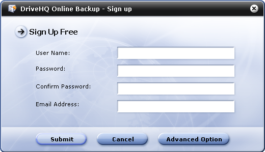 you can also sign up from any DriveHQ desktop software, e.g. DriveHQ Online Backup.