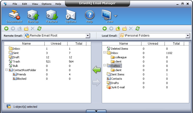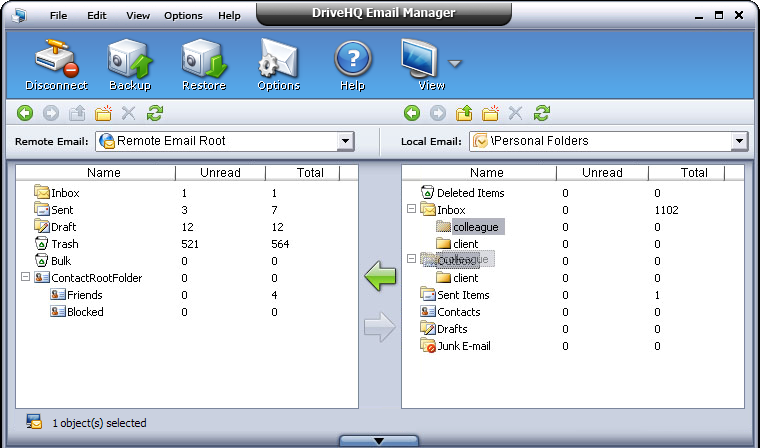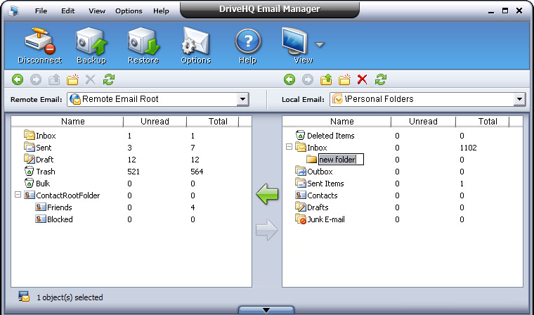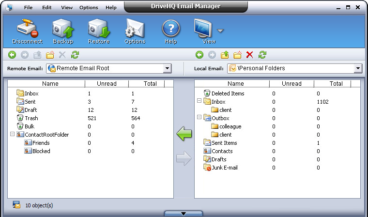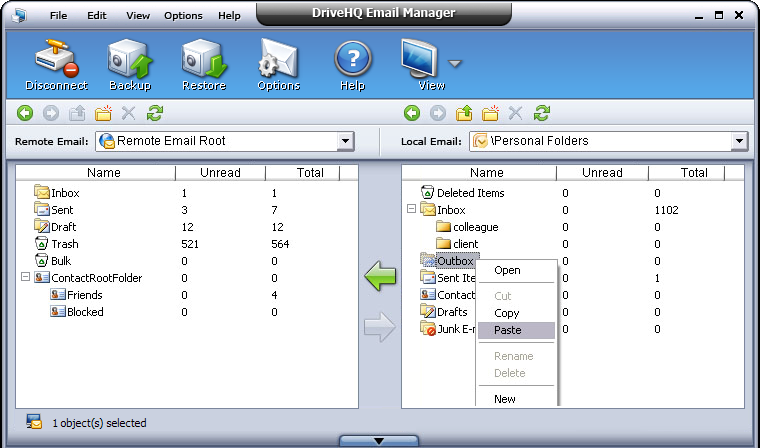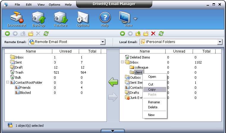 In the local email management pane, you can manage local emails and folders in the same way as in the Windows Explorer window. In specific, you can: