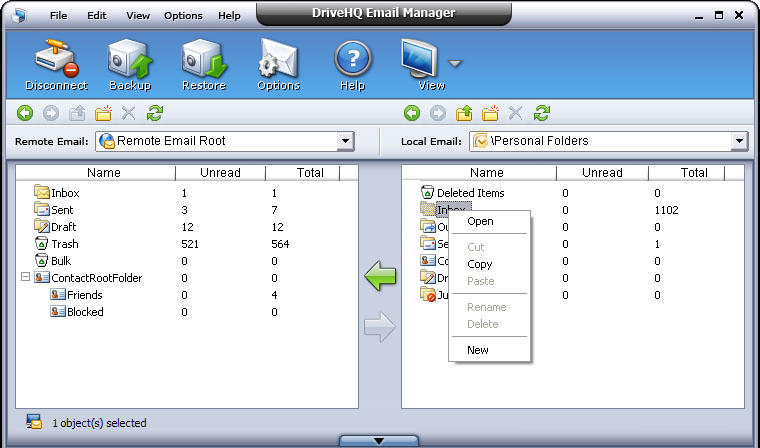 - Or, right-click the local pane area, other than the emails names, select New from the popup menu.
