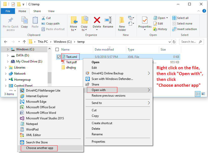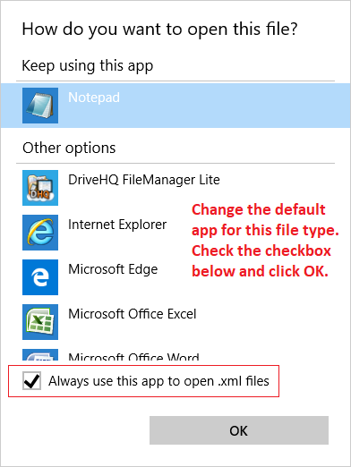 to “Microsoft Visual Studio” for all .xml files. Similarly, you can right click on a .docx file,