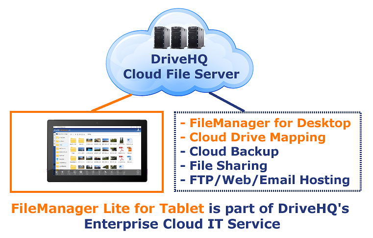 FileManager Lite for Tablets is only a small feature of DriveHQ's Cloud IT Service