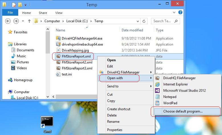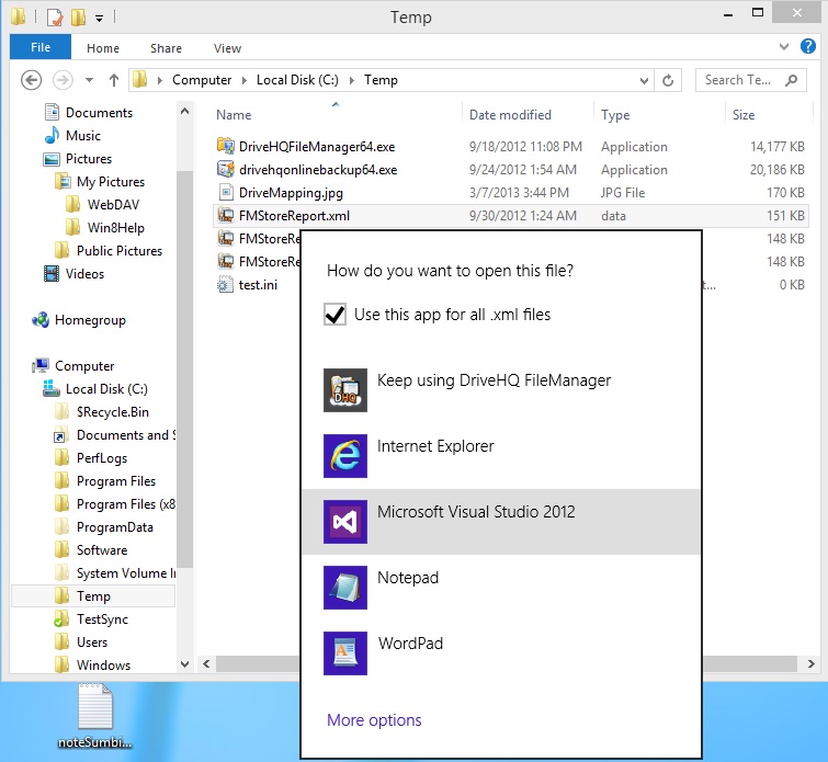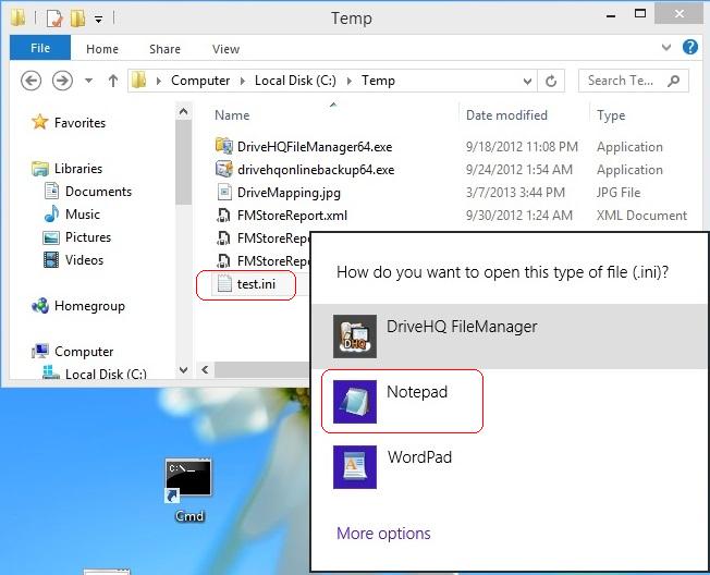 On Windows 8, the interface is slightly different. In the screenshot below, if you double click on a file named test.ini in Windows Explorer,