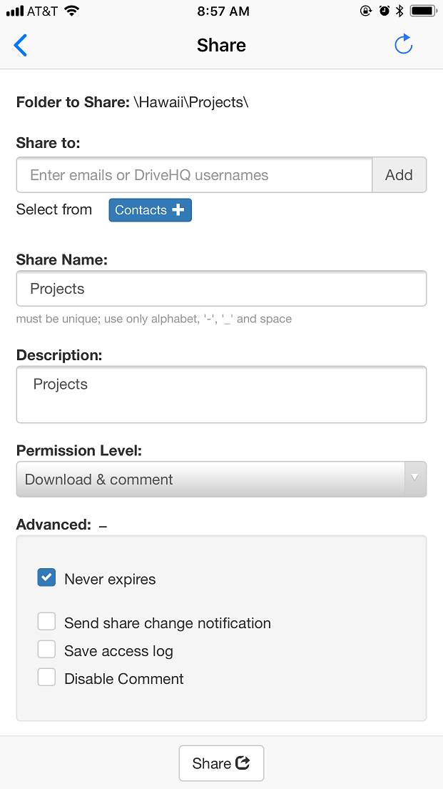 DriveHQ FileManager for iPhone is an enterprise cloud storage app with many high-end business features.