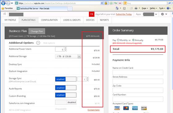 When you consider the type of service being provided to the end user, Egnyte’s price is undoubtedly one of the most expensive in the industry. For 30 users with 2TB of storage space and 5GB max file size, the price ranges from a minimum $5400/year to $9179.88. If you decide to add more integrations or features with Egnyte's service, the cost will continue to increase.