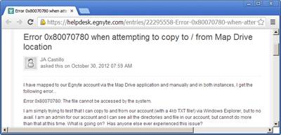 https://helpdesk.egnyte.com/entries/22295558-Error-0x80070780-when-attempting-to-copy-to-from-Map-Drive-location (when attempting to copy to / from Map Drive location, Error 0x80070780: The file cannot be accessed by the system.)