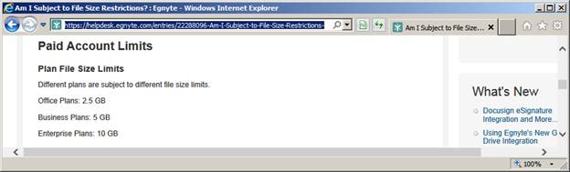 On top of this, Egnyte's Office Plan is limited to 2.5GB, for business plan, it is limited to 5GB; for enterprise plans, it is limited to 10GB. While most users probably don't have very large files, enterprises usually have much larger files, e.g. Outlook PST files, Database files, VHD files and video files that can be as large as 11GB to 200GB.