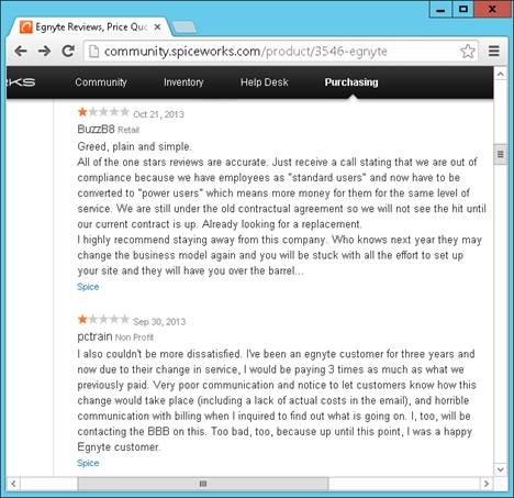 Reading user’s complaints, we see that Egnyte tried different ways of forcing their existing customers to pay a higher price. Over the last few years, they have also hiked their prices dramatically. Moreover, they actually hiked existing customer’s service price by 3 times with little communication (see images).