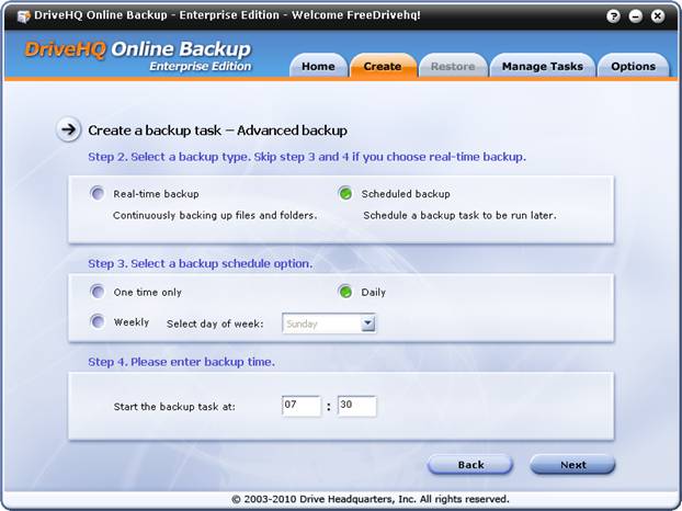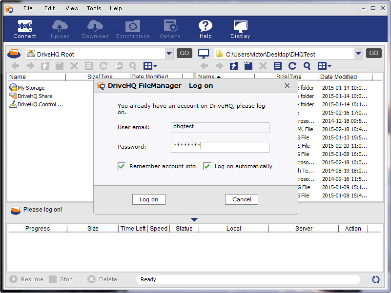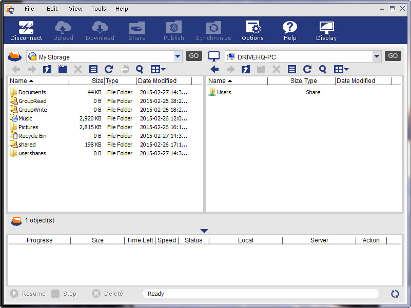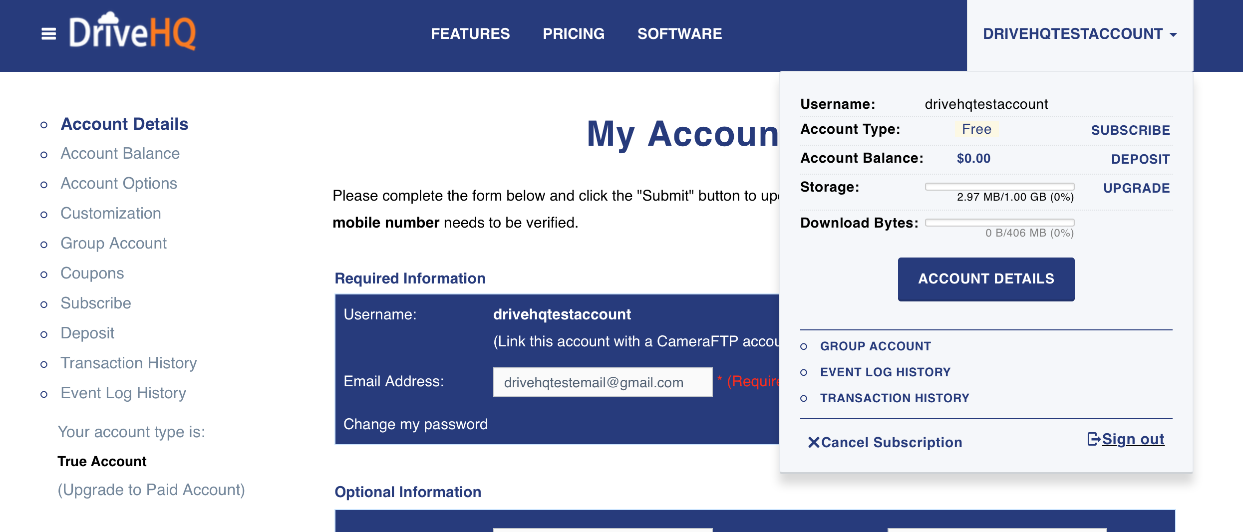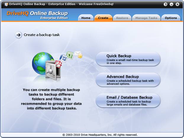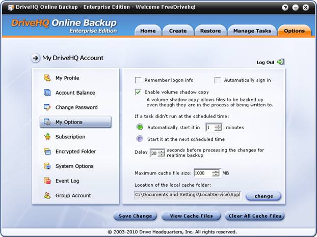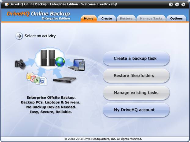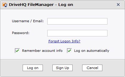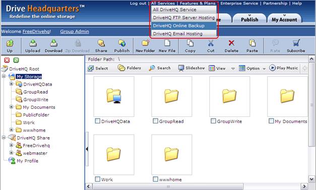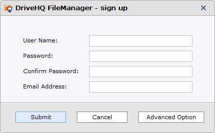DriveHQ service can be setup immediately from www.drivehq.com or any DriveHQ client application.
