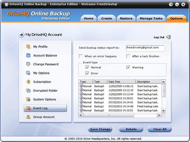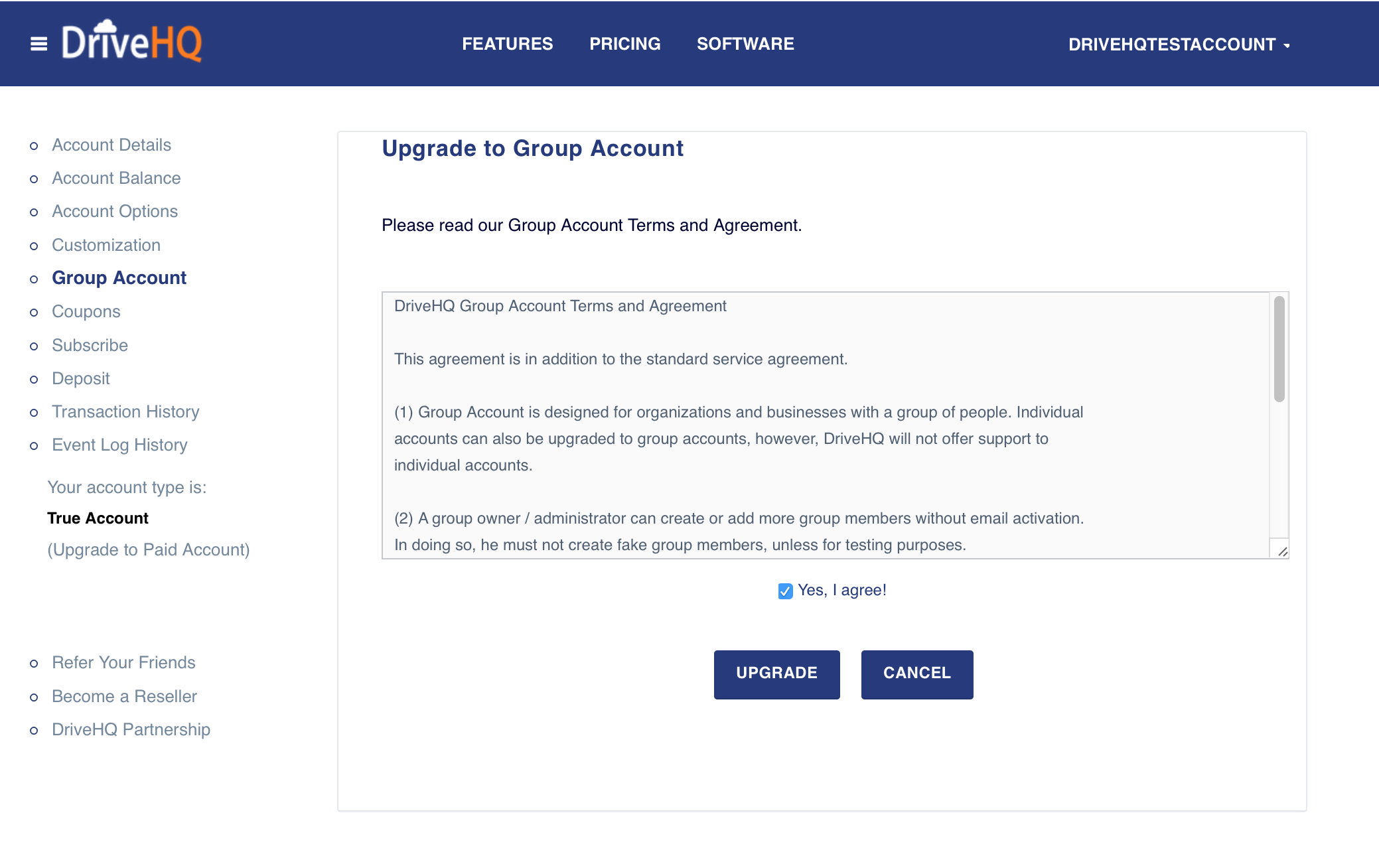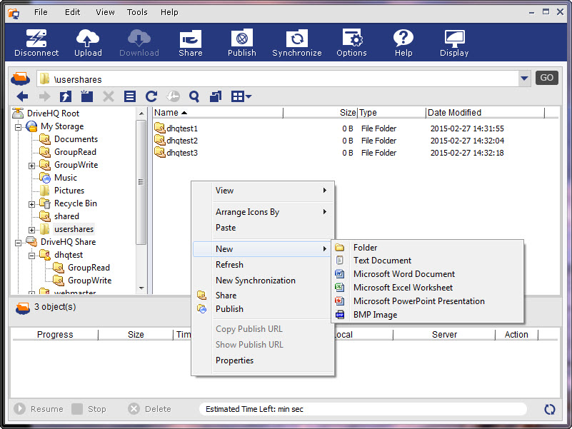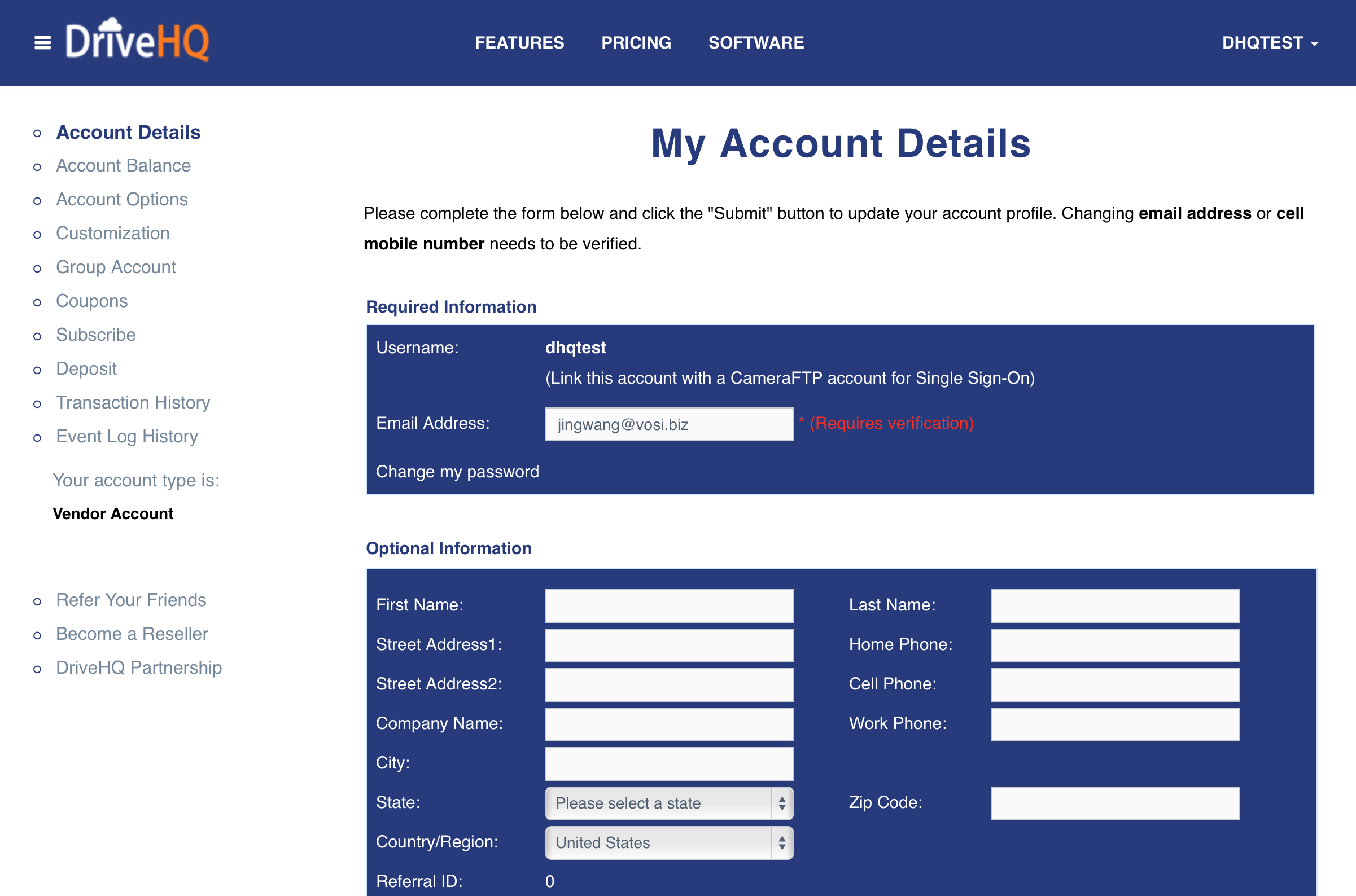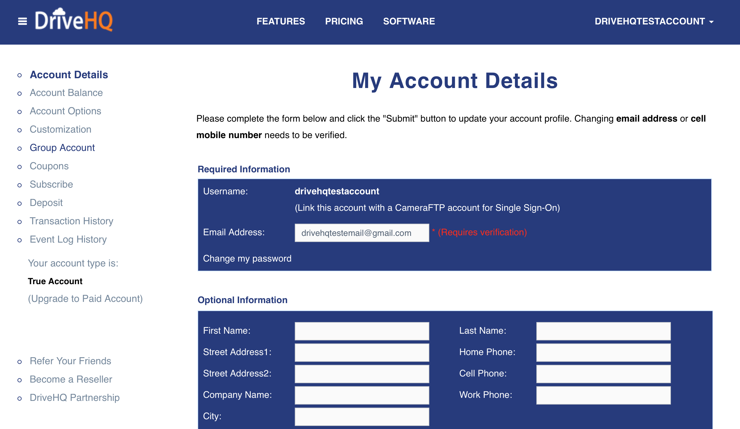 DriveHQ service can be setup immediately from www.drivehq.com or any DriveHQ client application.