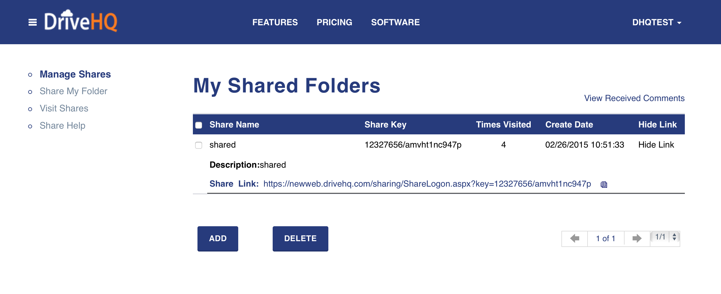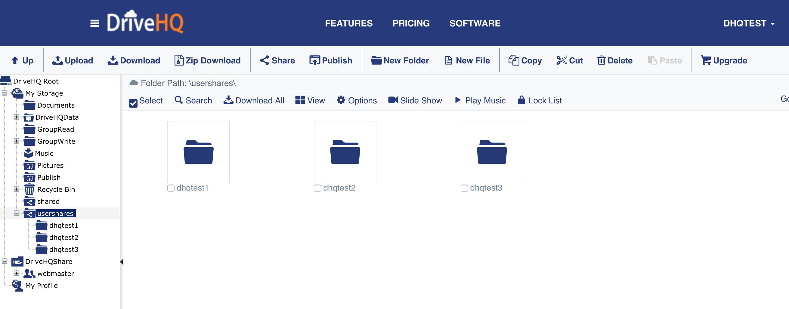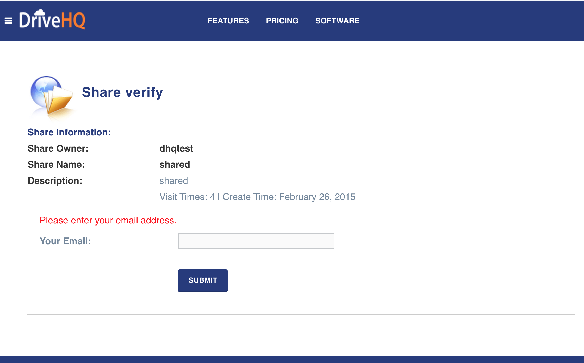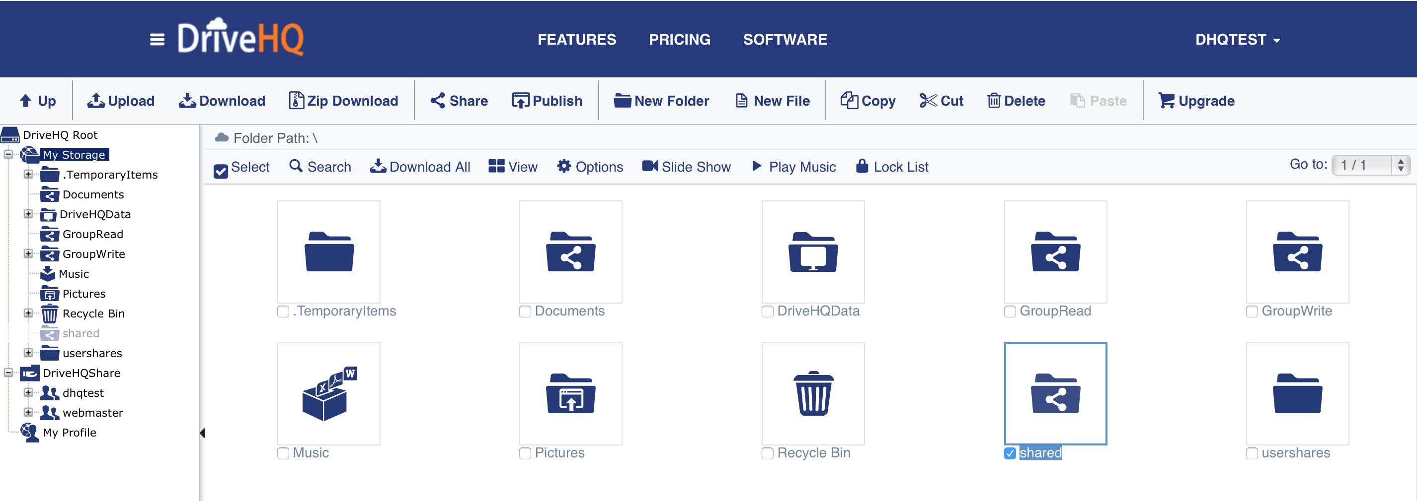 o Access a shared folder by clicking on the link sent from the “Share Notification” email; or access a shared folder by logging on DriveHQ and visit the “DriveHQ Share” folder, which contains all folders shared to you.