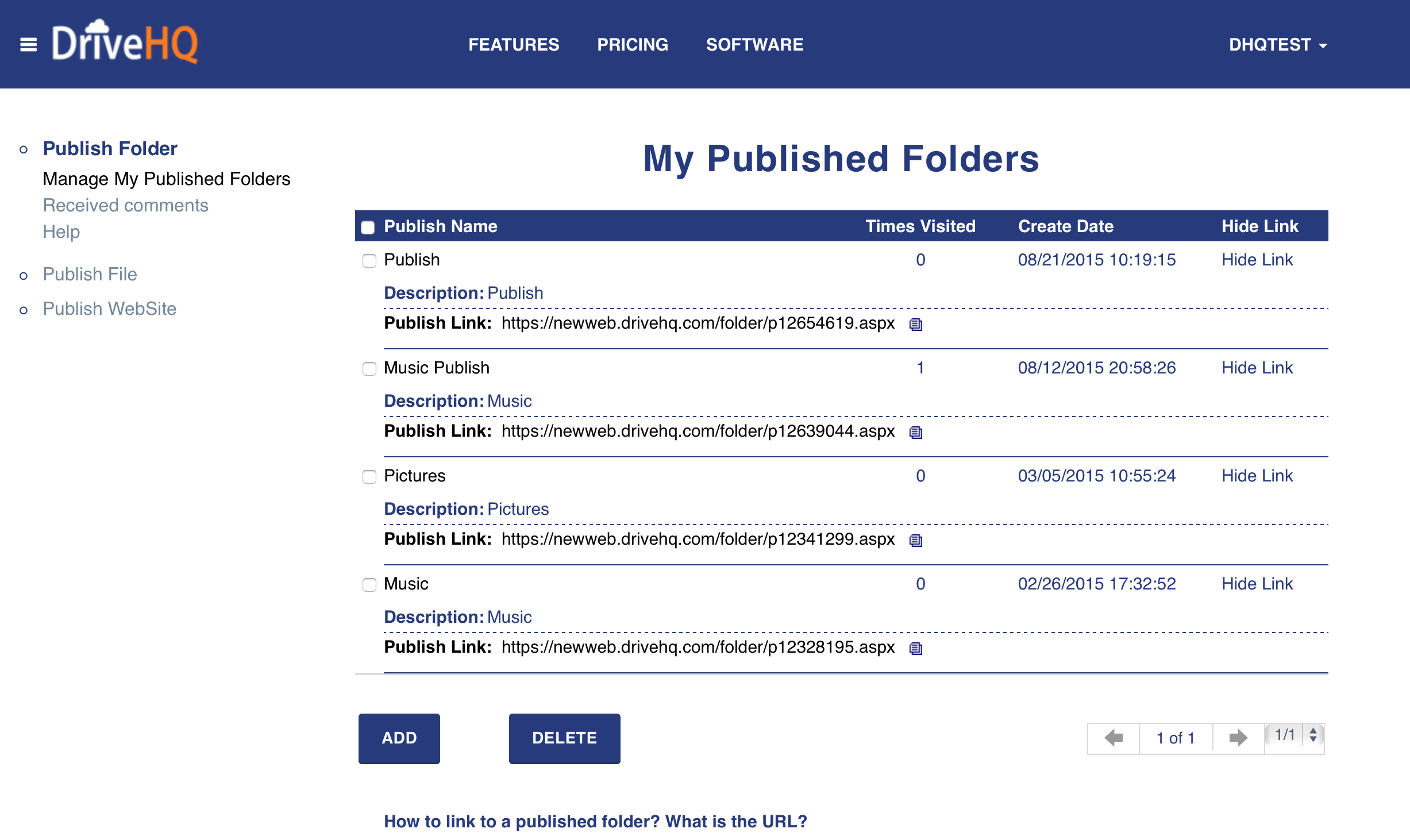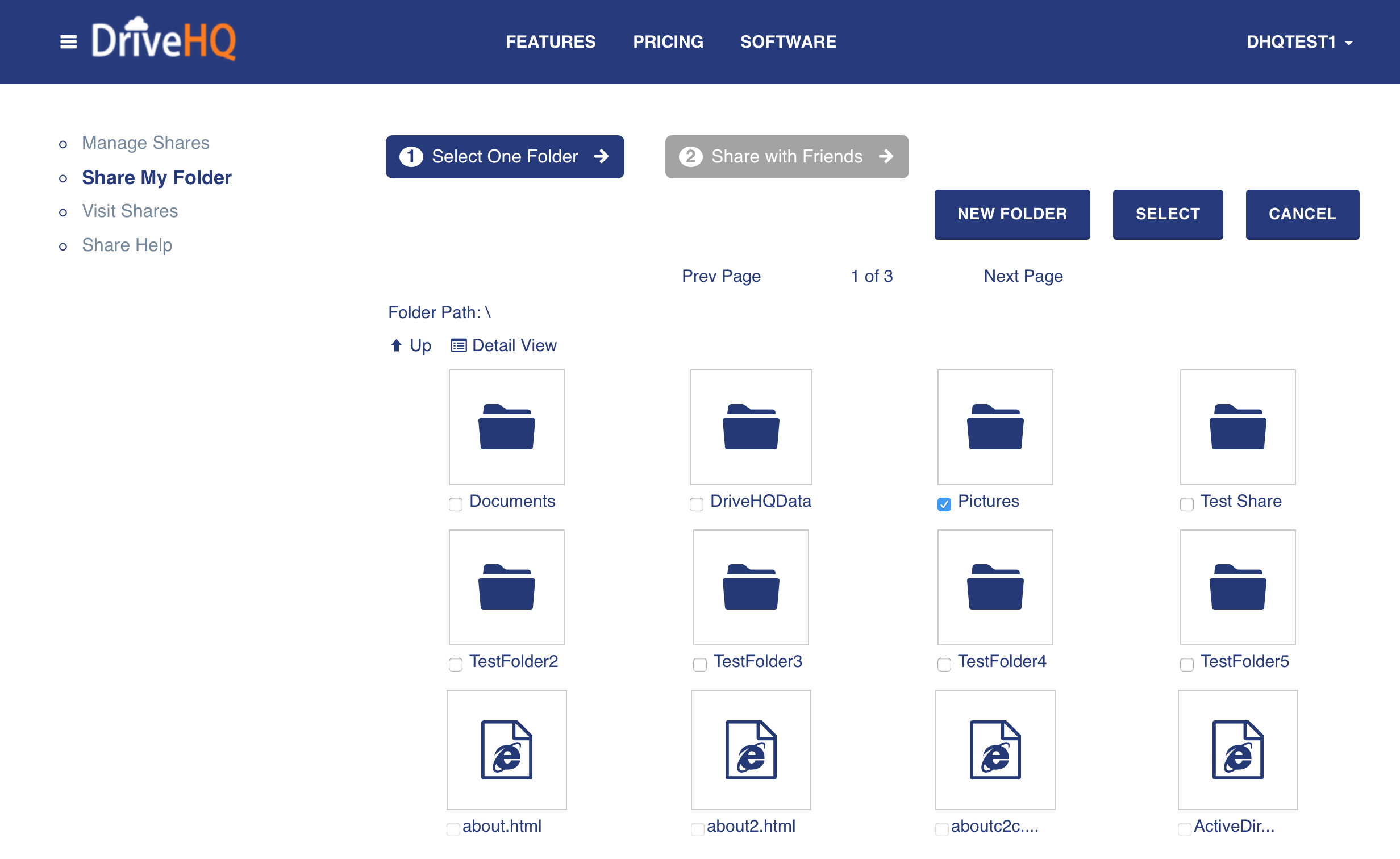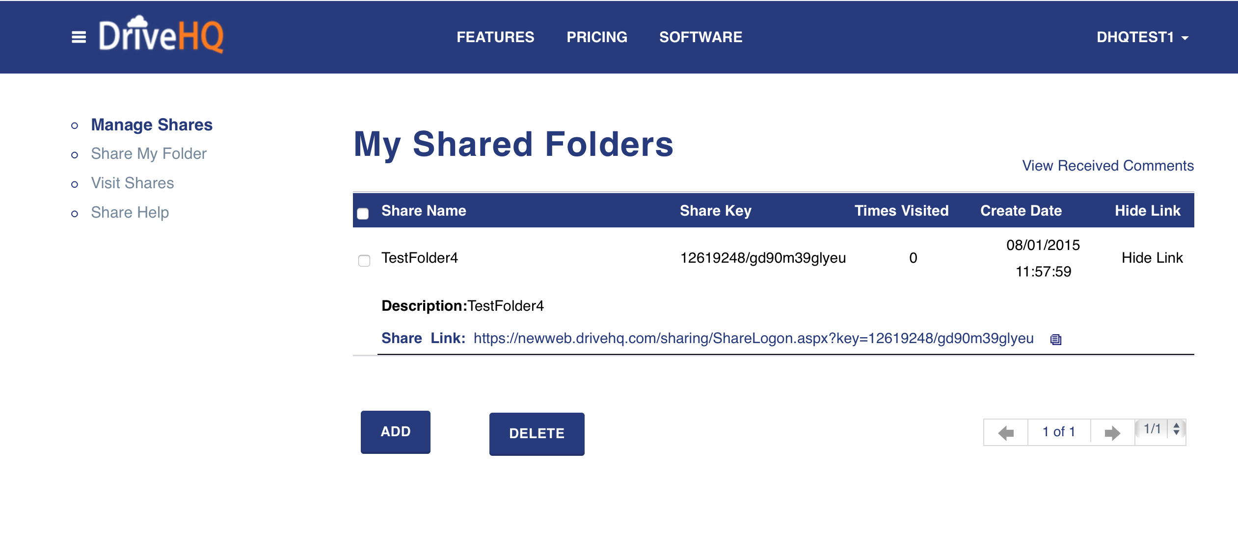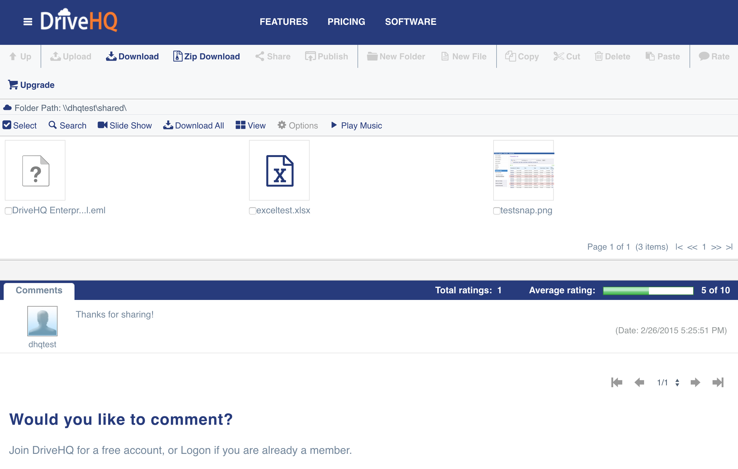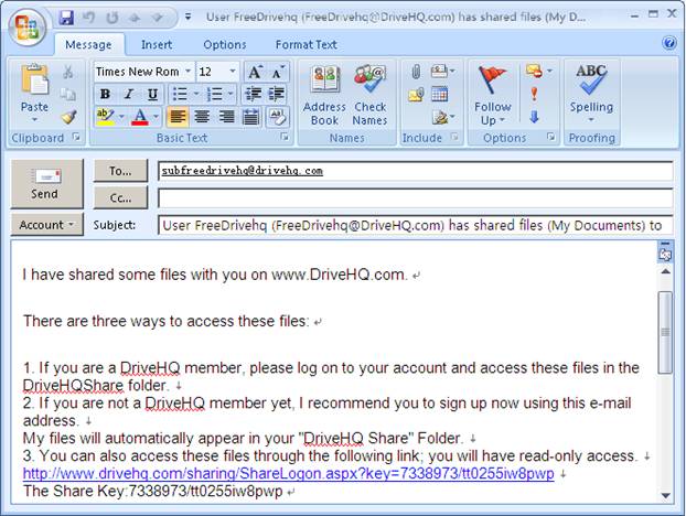 o Access a shared folder by clicking on the link sent from the “Share Notification” email; or access a shared folder by logging on DriveHQ and visit the “DriveHQ Share” folder, which contains all folders shared to you.