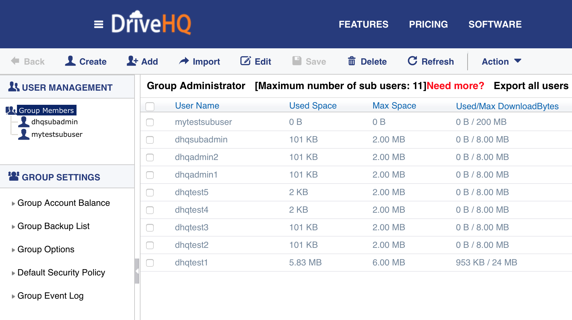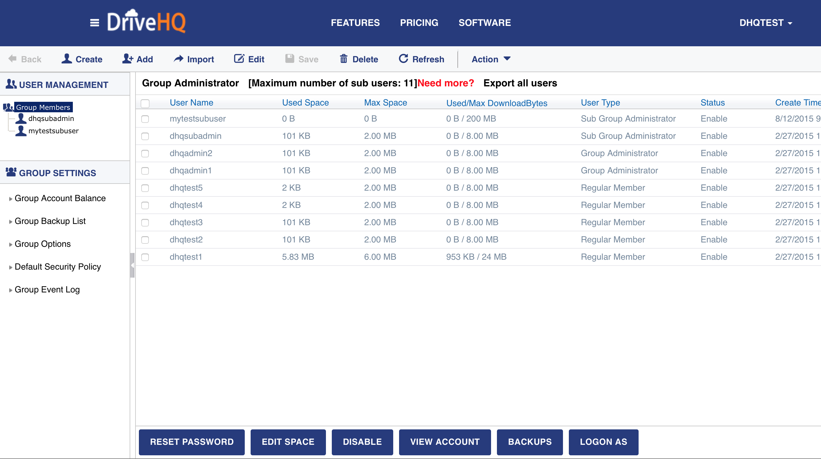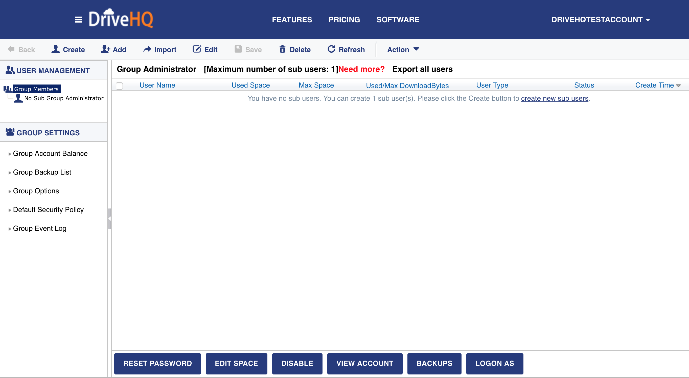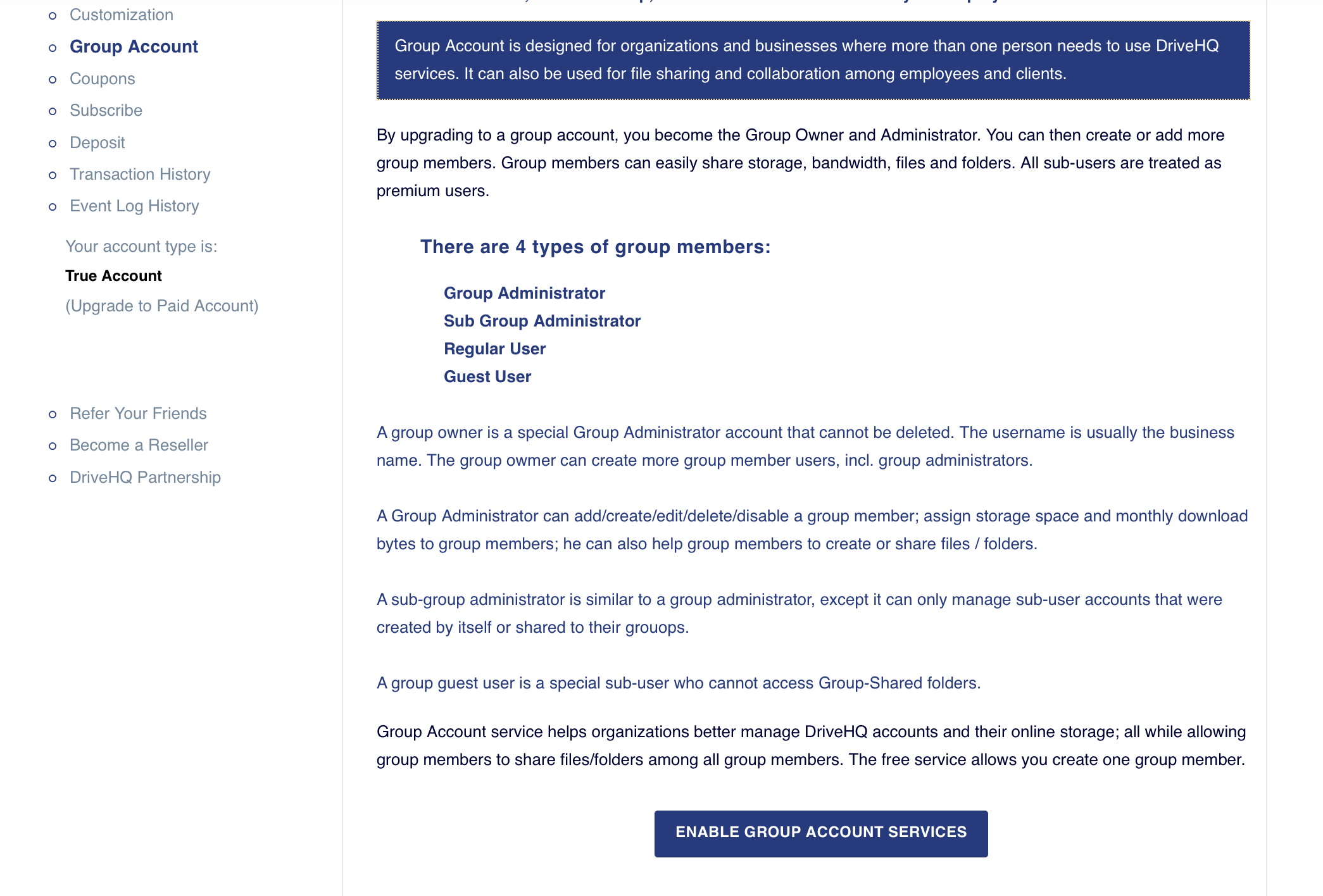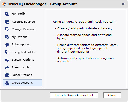 DriveHQ storage space and user licenses online, then resell sub-user accounts /