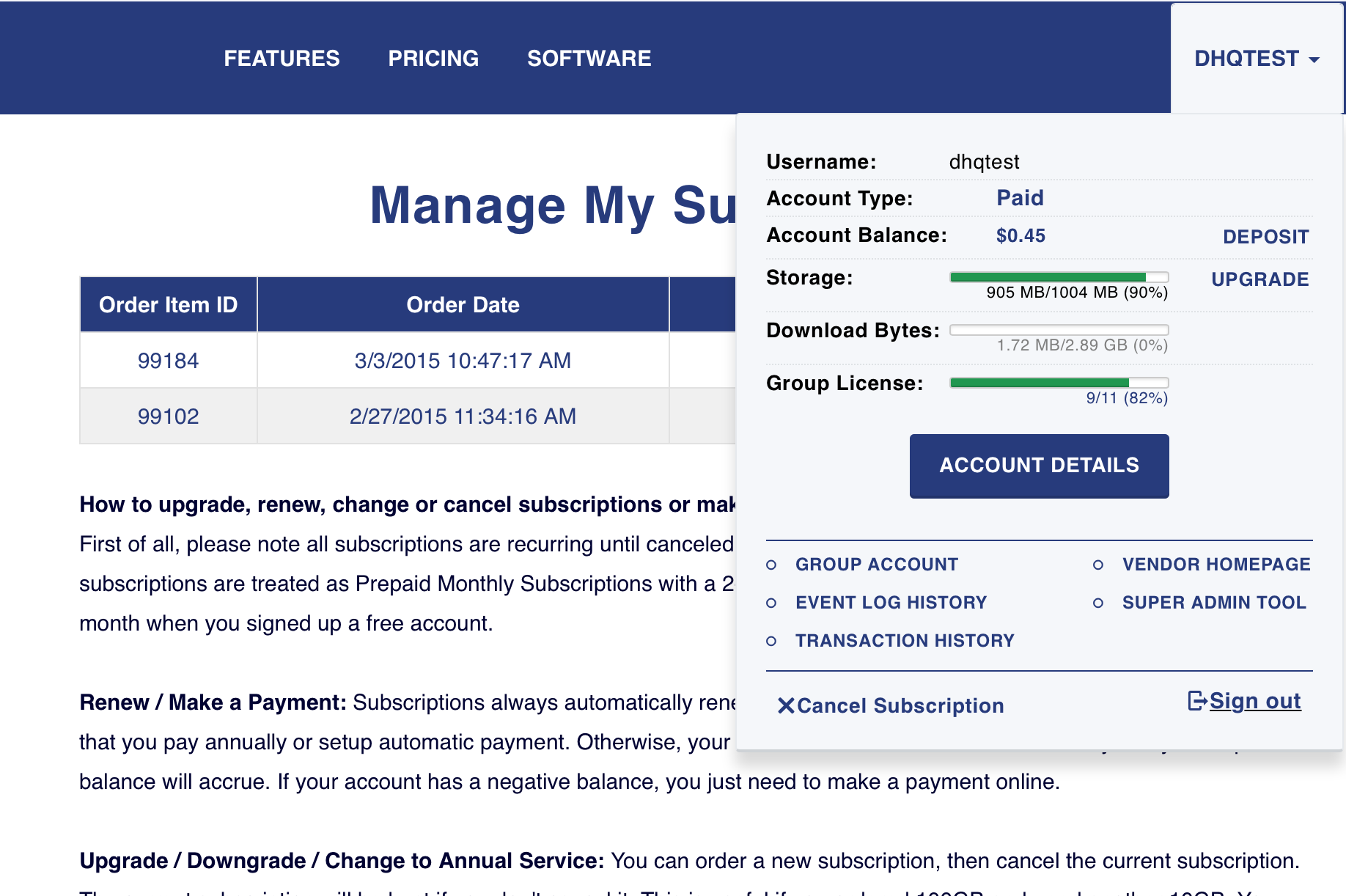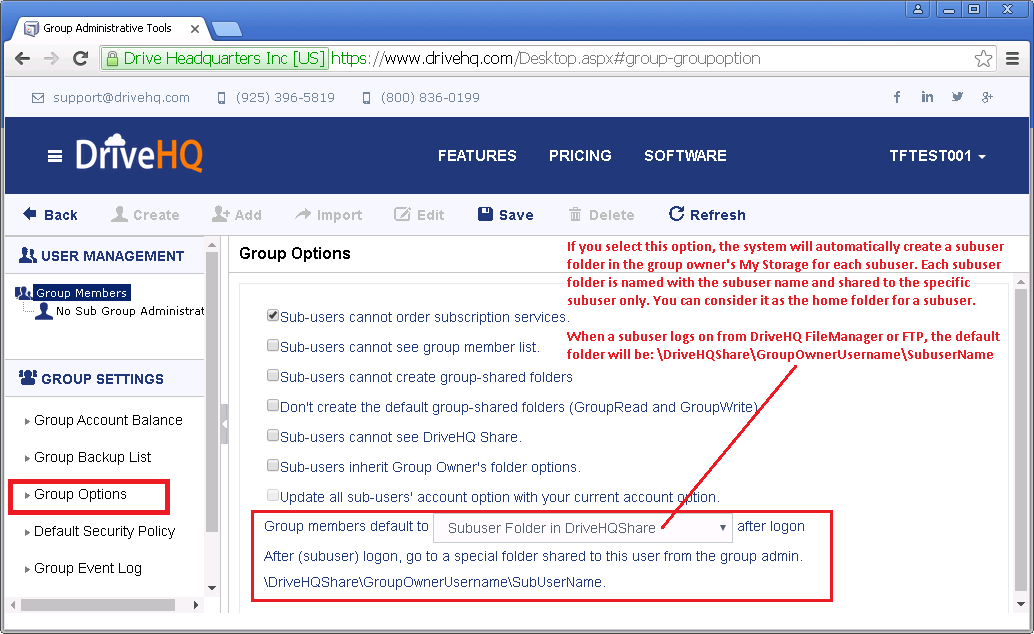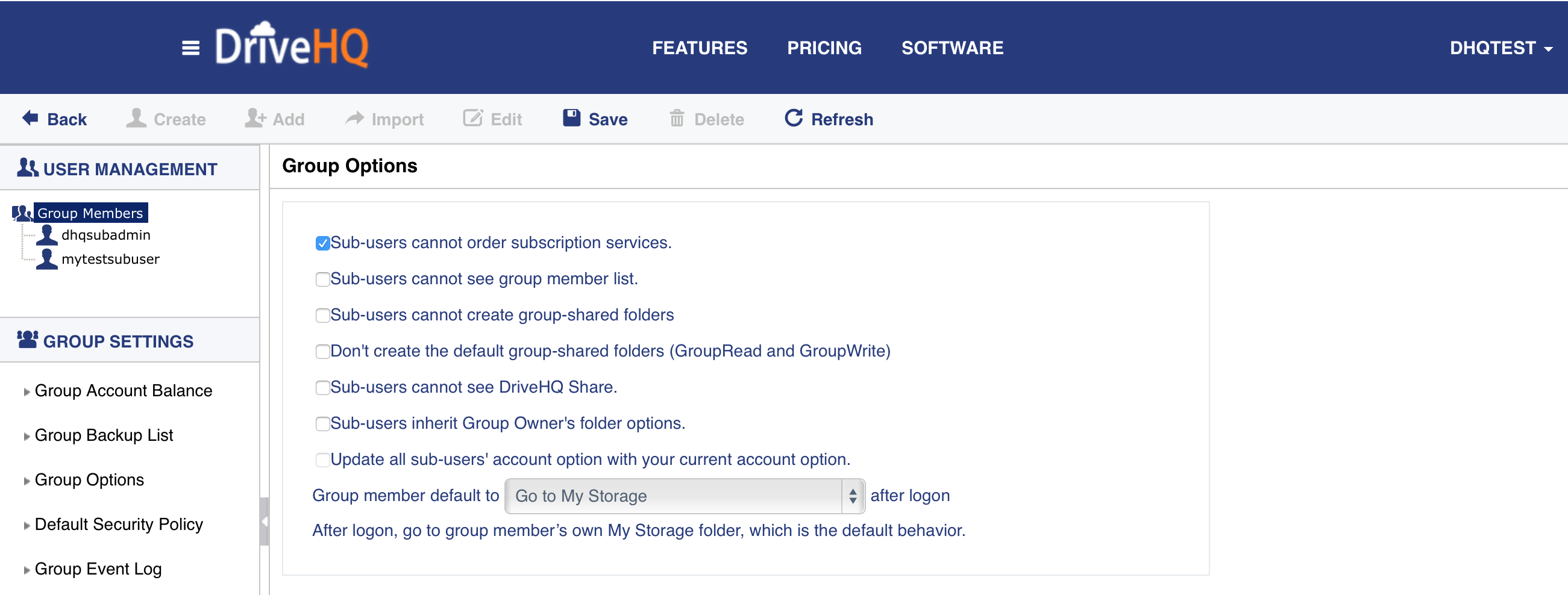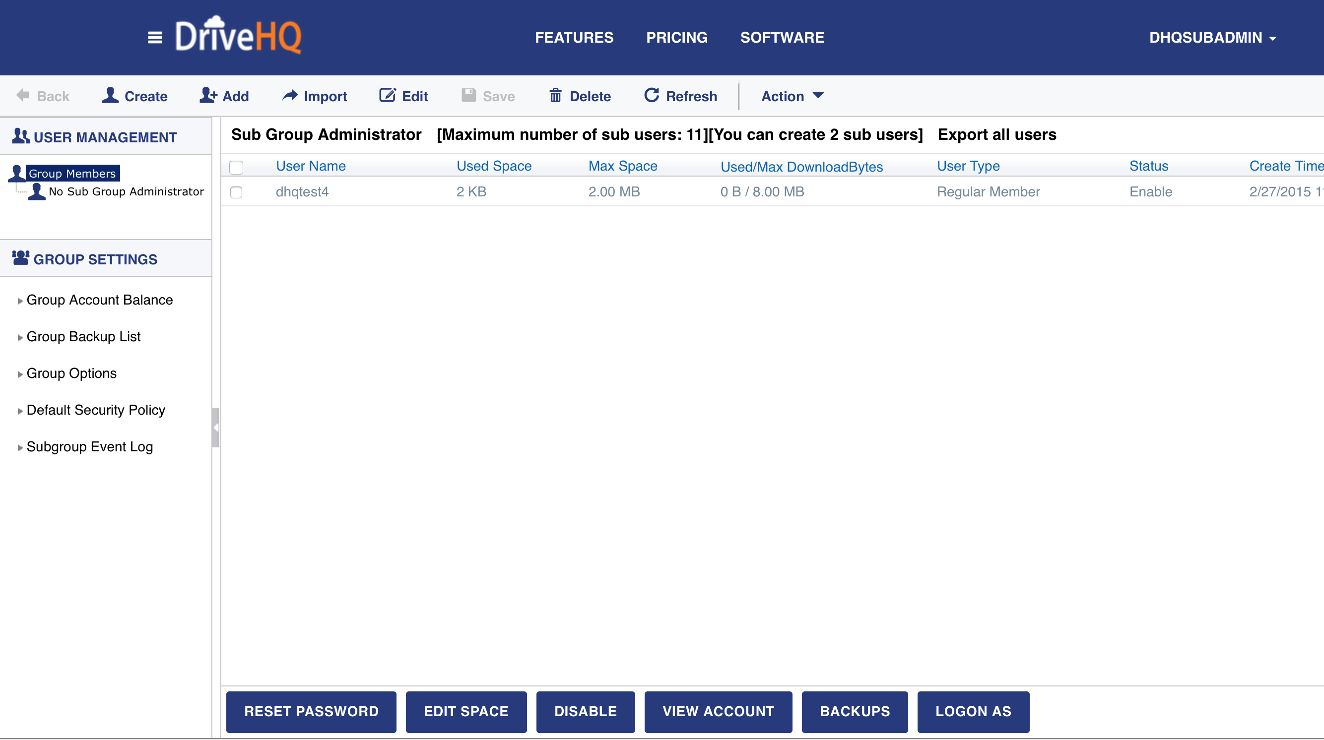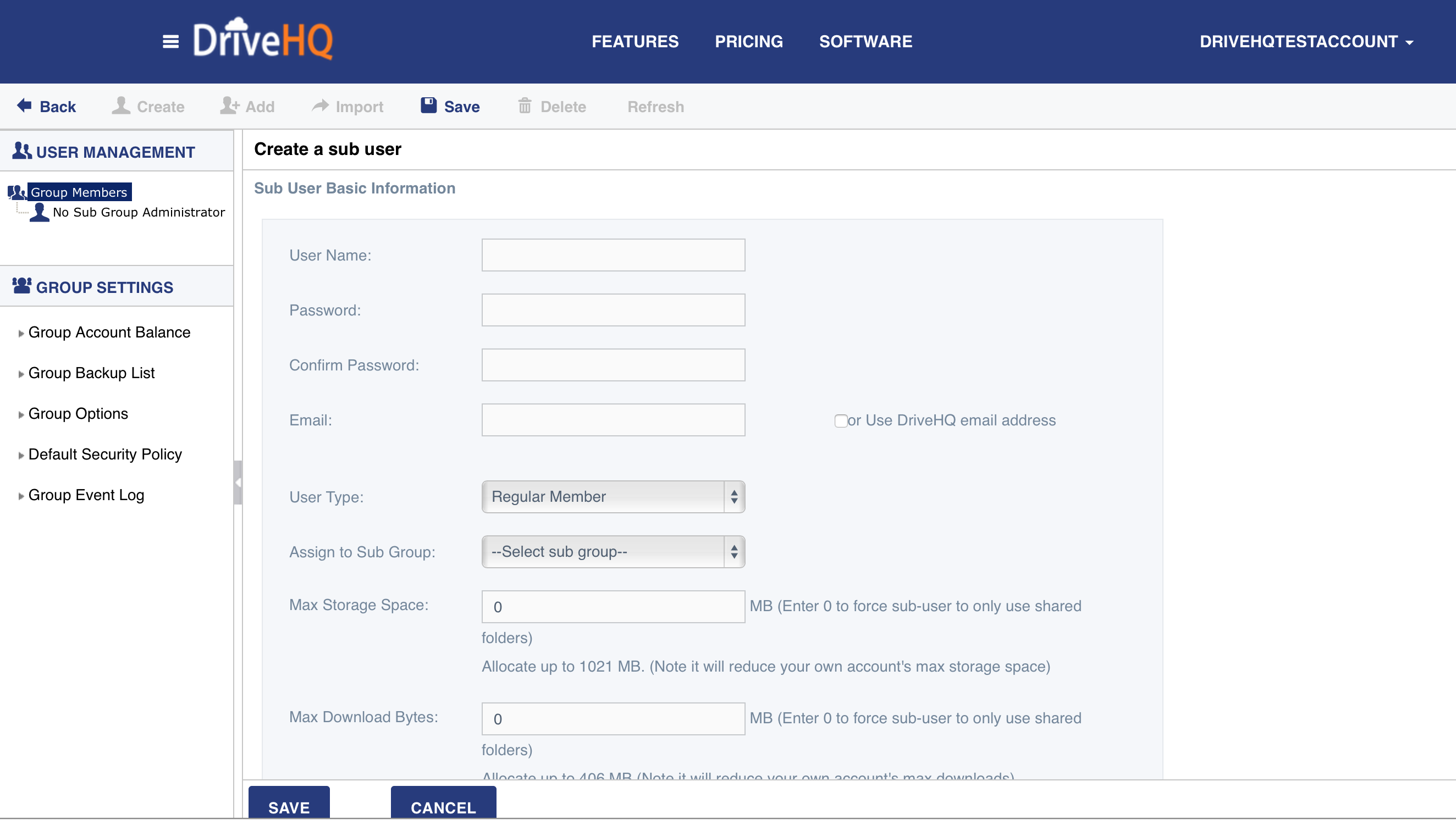 DriveHQ storage space and user licenses online, then resell sub-user accounts /