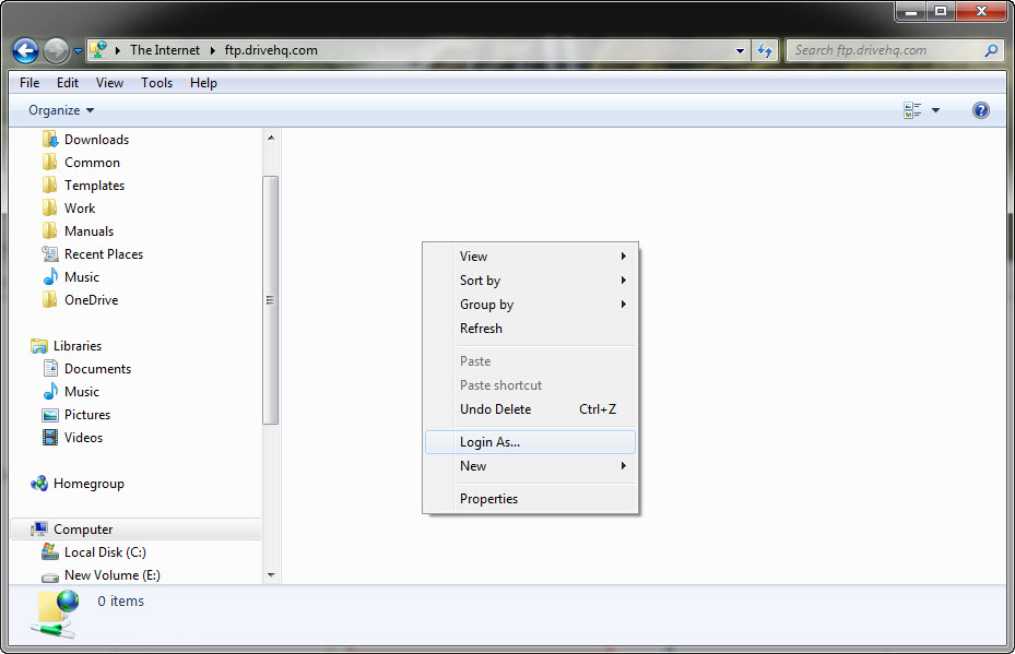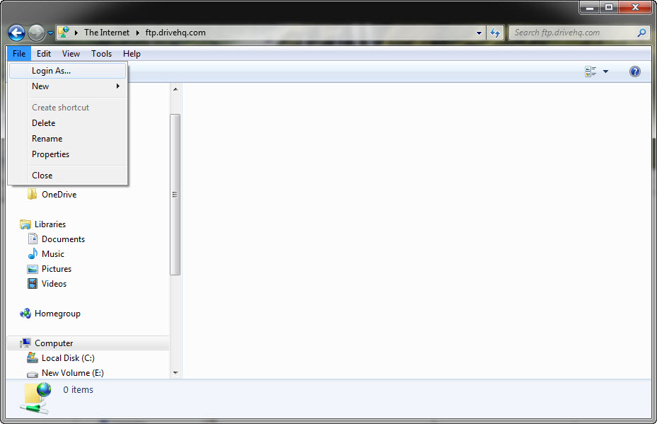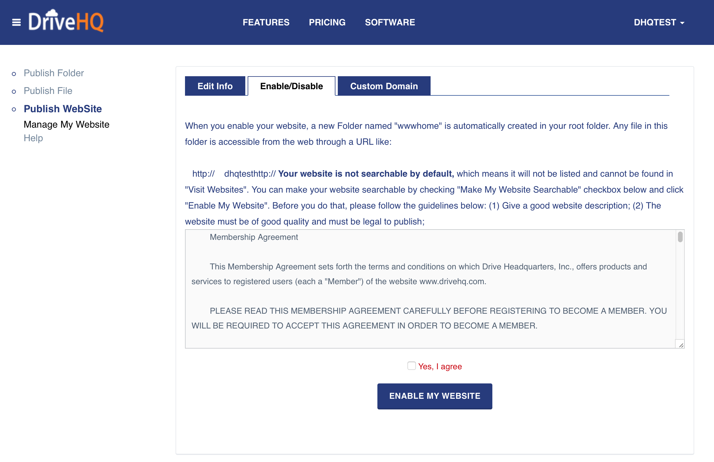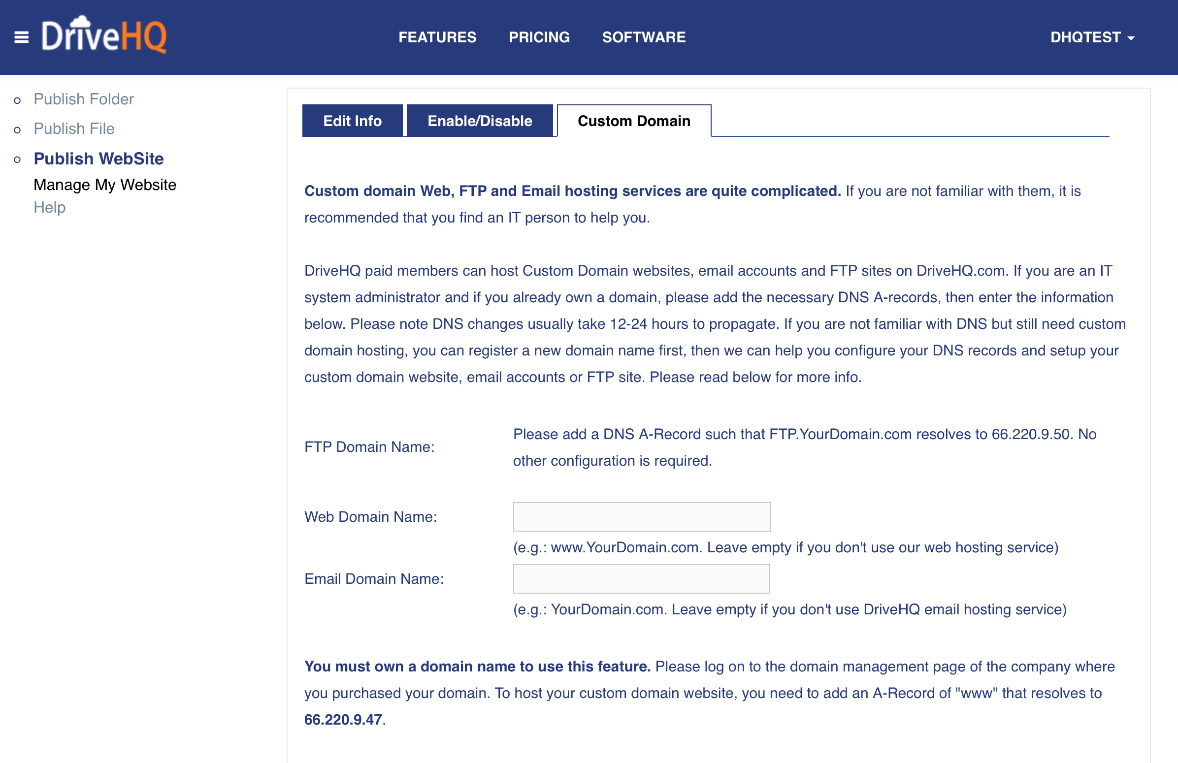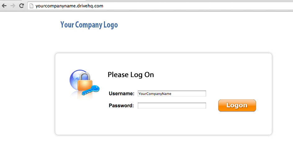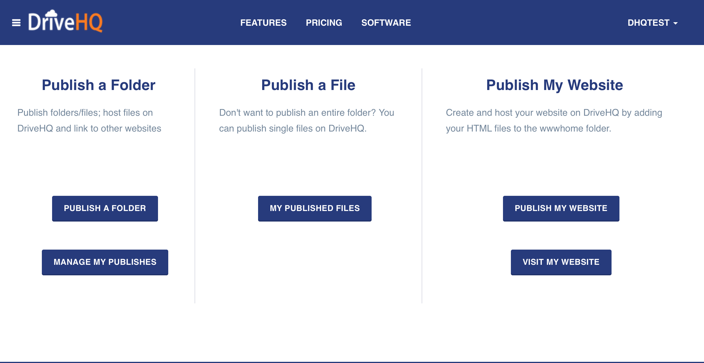 page as: http://USERNAME.drivehq.com/. After login, the DriveHQ website logo