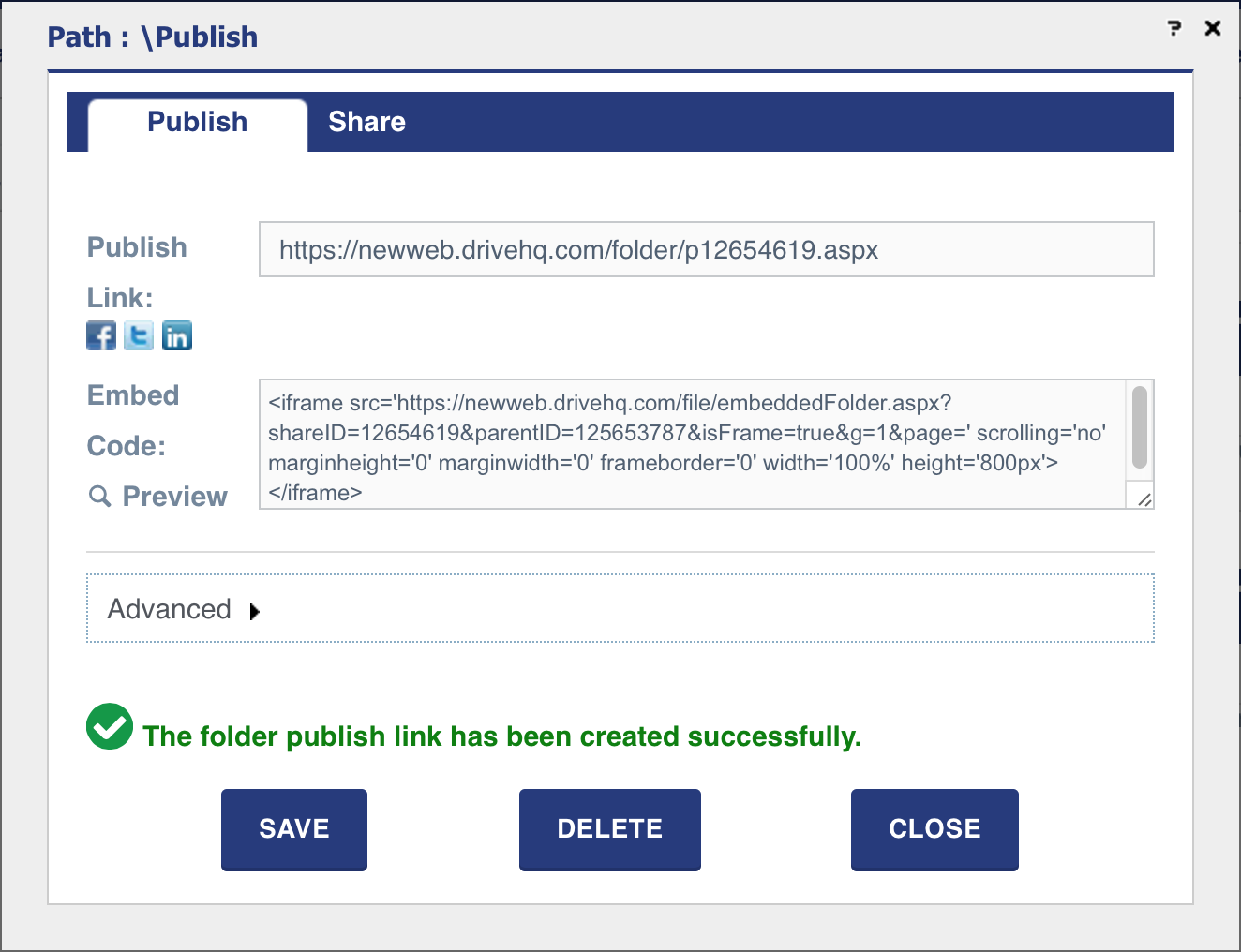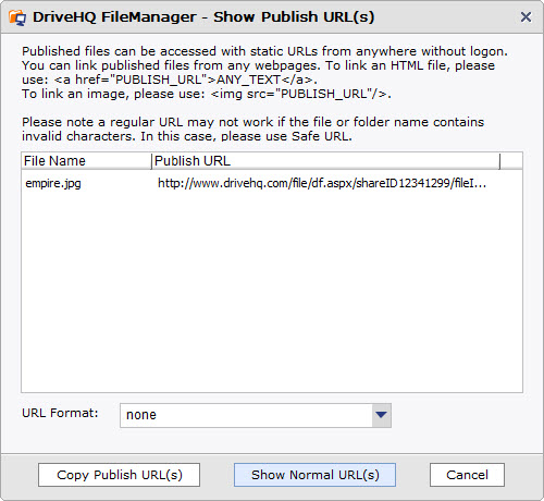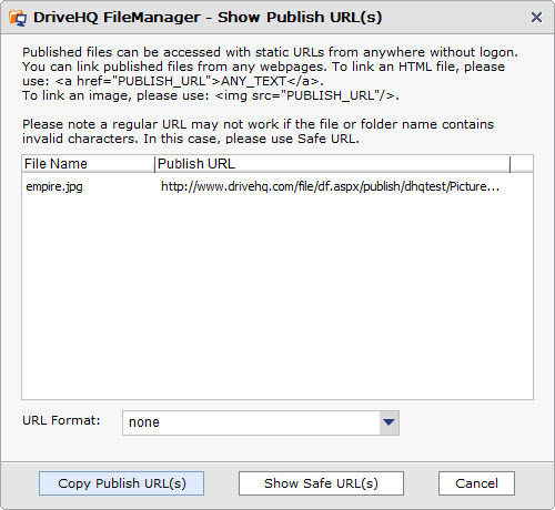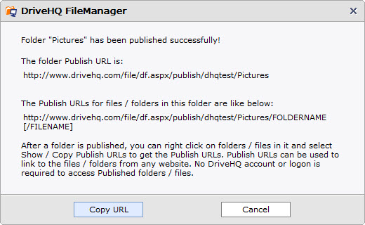 o Publish a folder / file and create static URLs / Publish URLs that can be directly linked from other websites / web pages, such as eBay, Facebook, etc.