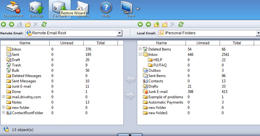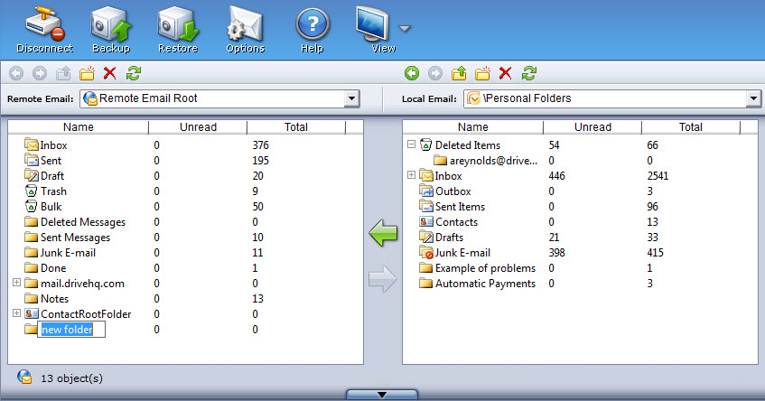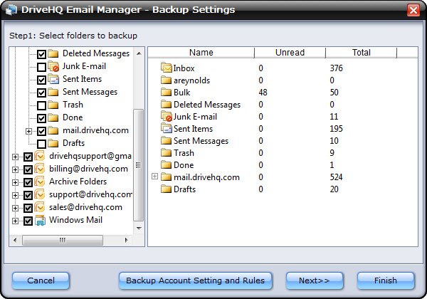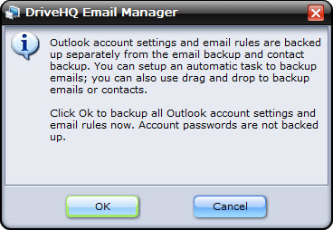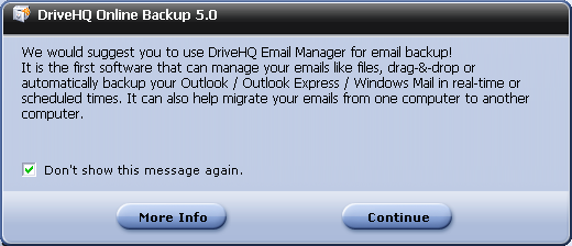 · Email Hosting and Backup: DriveHQ offersvemail hosting service that is based on SMTP/POP3/IMAP/Webmail and supports any email client. If you have a private email domain, you can also host this with DriveHQ. Our EmailManager software the first application that allows drag & drop backup your Outlook emails / contacts. It is far more efficient than PST file based email backup. It only uploads the new / changed emails and contacts. You never need to upload / download a huge PST file to backup / restore emails or contacts.