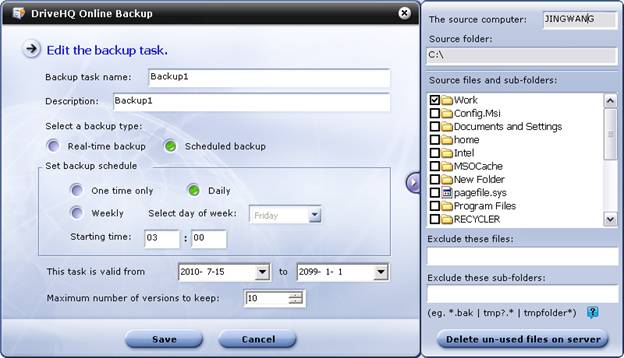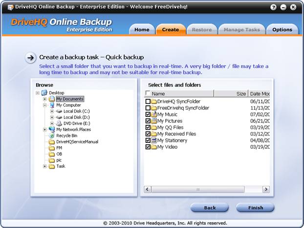 backup important documents to DriveHQ's secure data centers using our complete backup solution. Our Online Backup software can be used to backup material located on your Mac or PC. The Cloud-to-Cloud backup service can be used to create redundancy of your DriveHQ material in case you are struck with a virus or accidental deletions.
