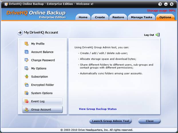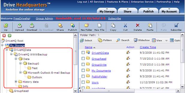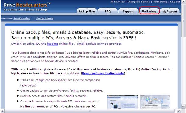 embraced DriveHQ's Online Storage & Sharing, Backup, FTP / Email /